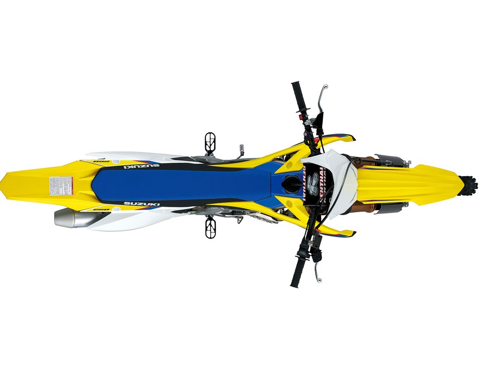Mais potência e melhor desempenho implica maior poder de travagem pelo que a Suzuki montou um disco dianteiro de maior diâmetro de 270mm, o anterior era de 250mm, e confia também na maior aderência dos novos pneus Dunlop MX-33 que monta. Um novo cilindro principal do travão traseiro permite um melhor desempenho do mesmo e em simultâneo evita a maior acumulação de sujidade sobre o mesmo.