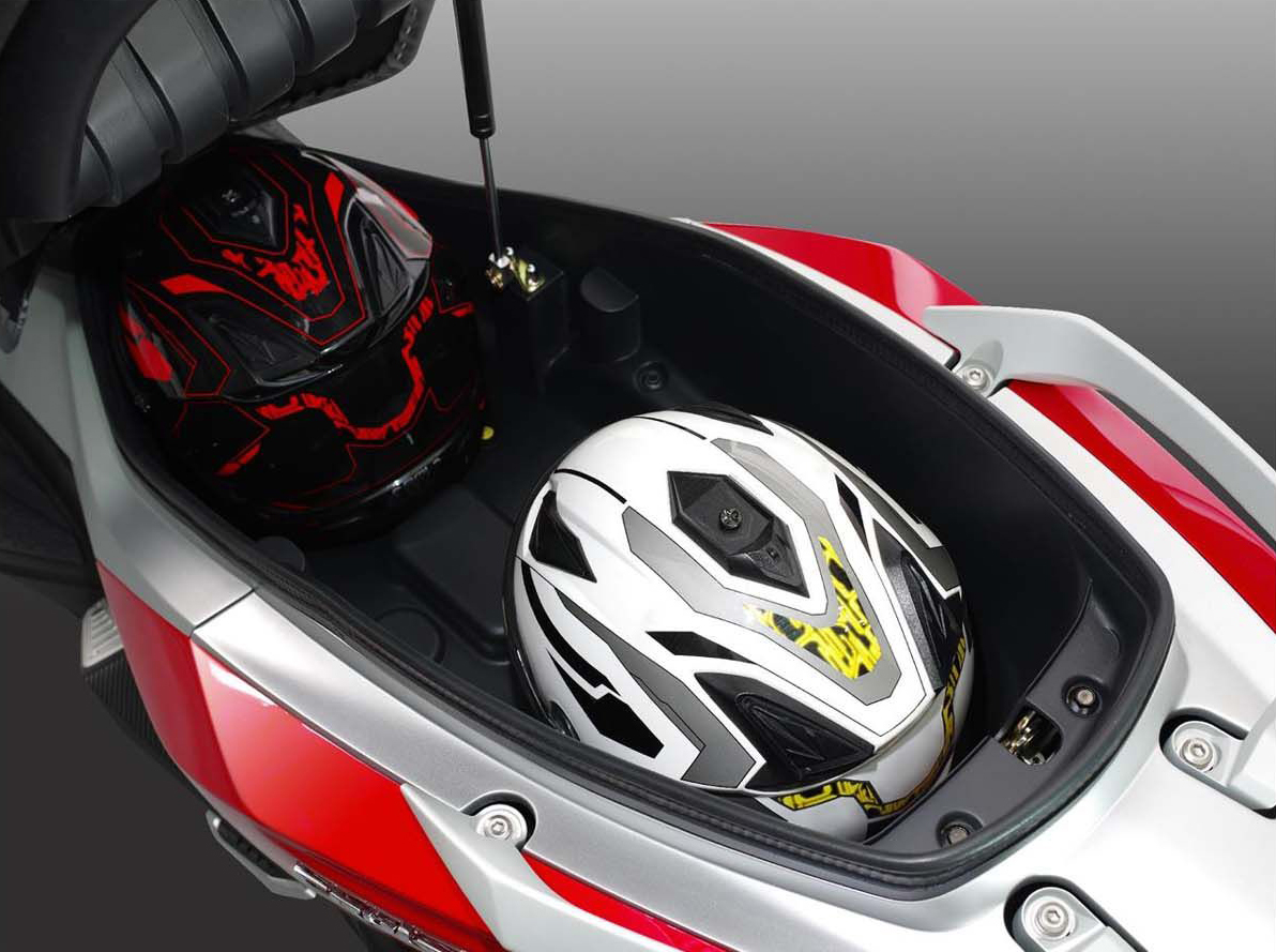 Desenvolvida com base na comprovada GTS 300, a nova Cruisym eleva a fasquia em termos de desenho, muito mais moderno e apelativo, qualidade de construção e comportamento dinâmico, não descurando igualmente os aspectos práticos, graças à elevada capacidade de bagagem do espaço colocado debaixo do ergonómico assento e que pode albergar dois capacetes integrais, sem esquecer o porta-luvas dianteiro onde se inclui uma tomada USB de 12V, onde poderá carregar comodamente a bateria do telemóvel.